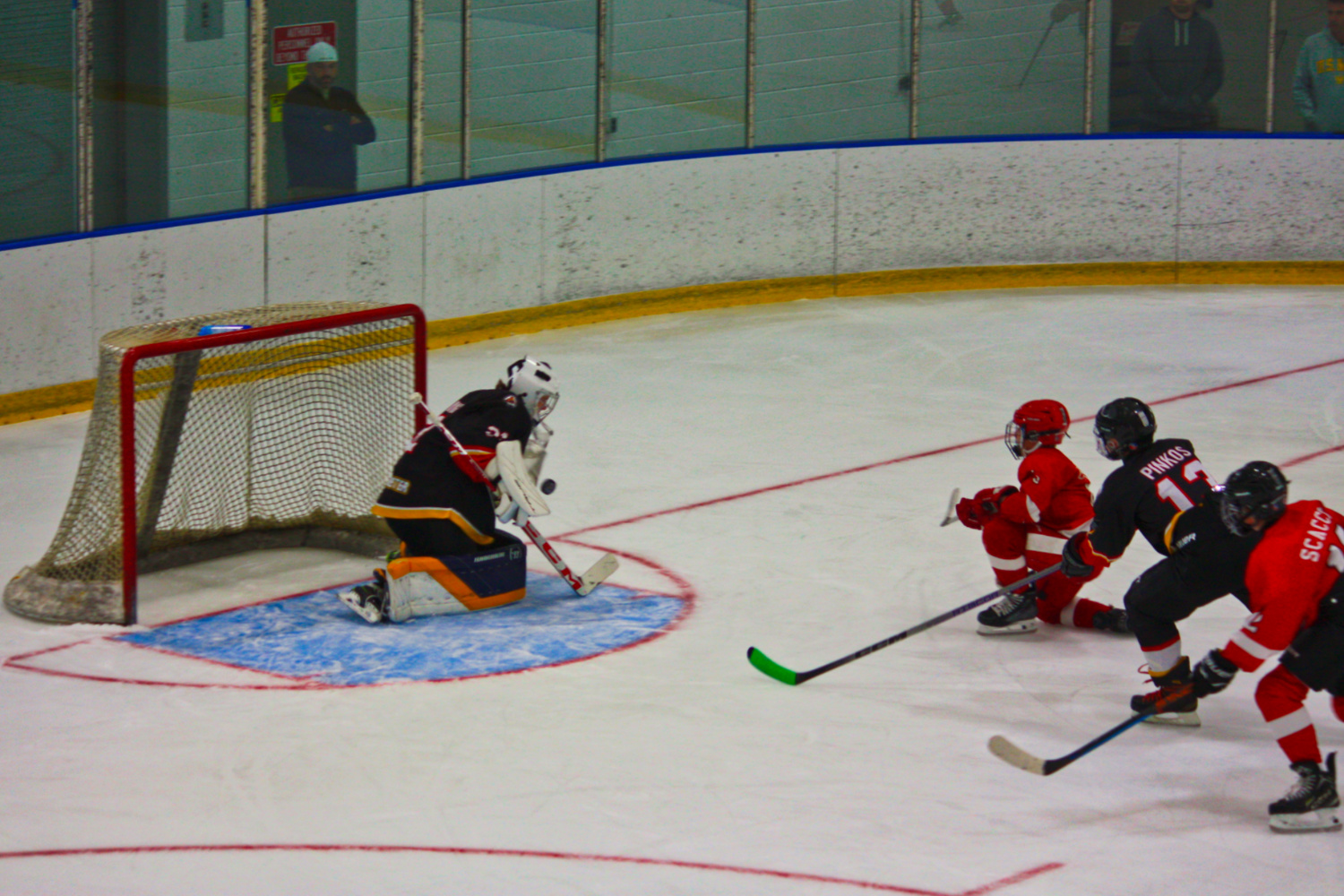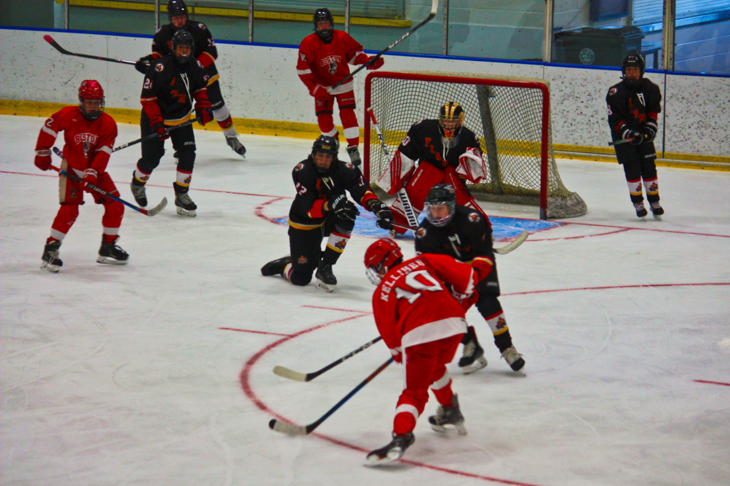 The Terrier goaltender made a nice save through traffic (Destani and Jacob St. Pierre were in front of the goalie). The puck kicked off of the goaltender into the crease where St. Pierre had the wherewithal to backhand the puck into the net. Flames trailed, 2-1 with 11:27 left to play. PPG (5on3) – St. Pierre from Powers and Ouellette.