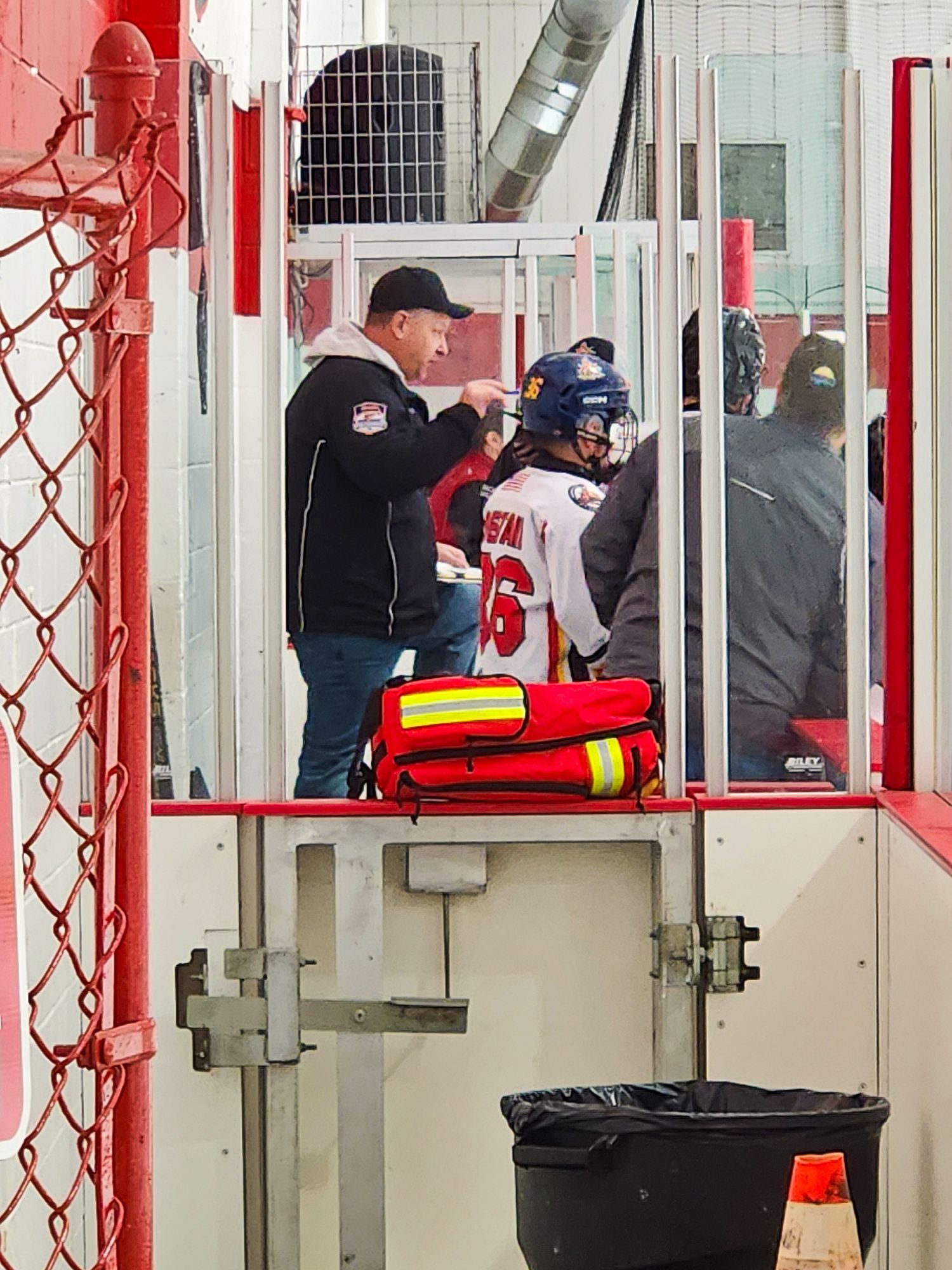 In a nutshell, I thought the opening game was a well contested game. The Minuteman Flames (MM Flames) were in town for the first game of the season. The visiting Flames play out of the New England Sports Center down in Marlborough, MA. The visitors scored once in the second period and again in the final period to win the game, 2-0. Shots were recorded as 23-19 in favor of the Minuteman Flames. If the shots were that close in number, the quality of shot or scoring chance definitely favored the MM Flames.