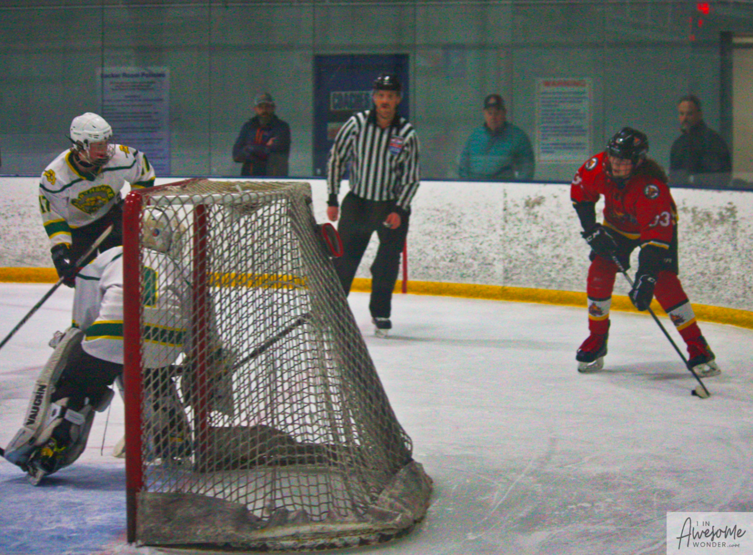 The Wild came out flying to start the 3rd period knowing they had to get back into the game. They did score with 14:05 left in the 3rd. Travis Ingalls made a couple of amazing saves before the puck was pushed into the net. Travis was hurt on the play stayed down for a few minutes. He stayed in the game. After another six minutes of game play, Travis came out with 8:03 left, and Will Rosenbeck reentered the game. Travis had made more saves but he was in pain.