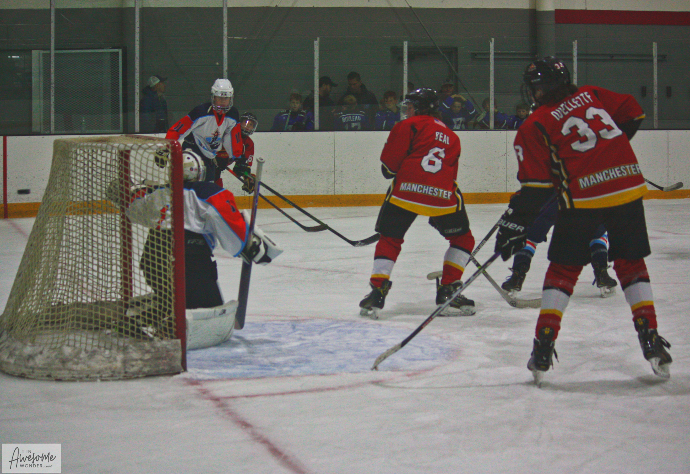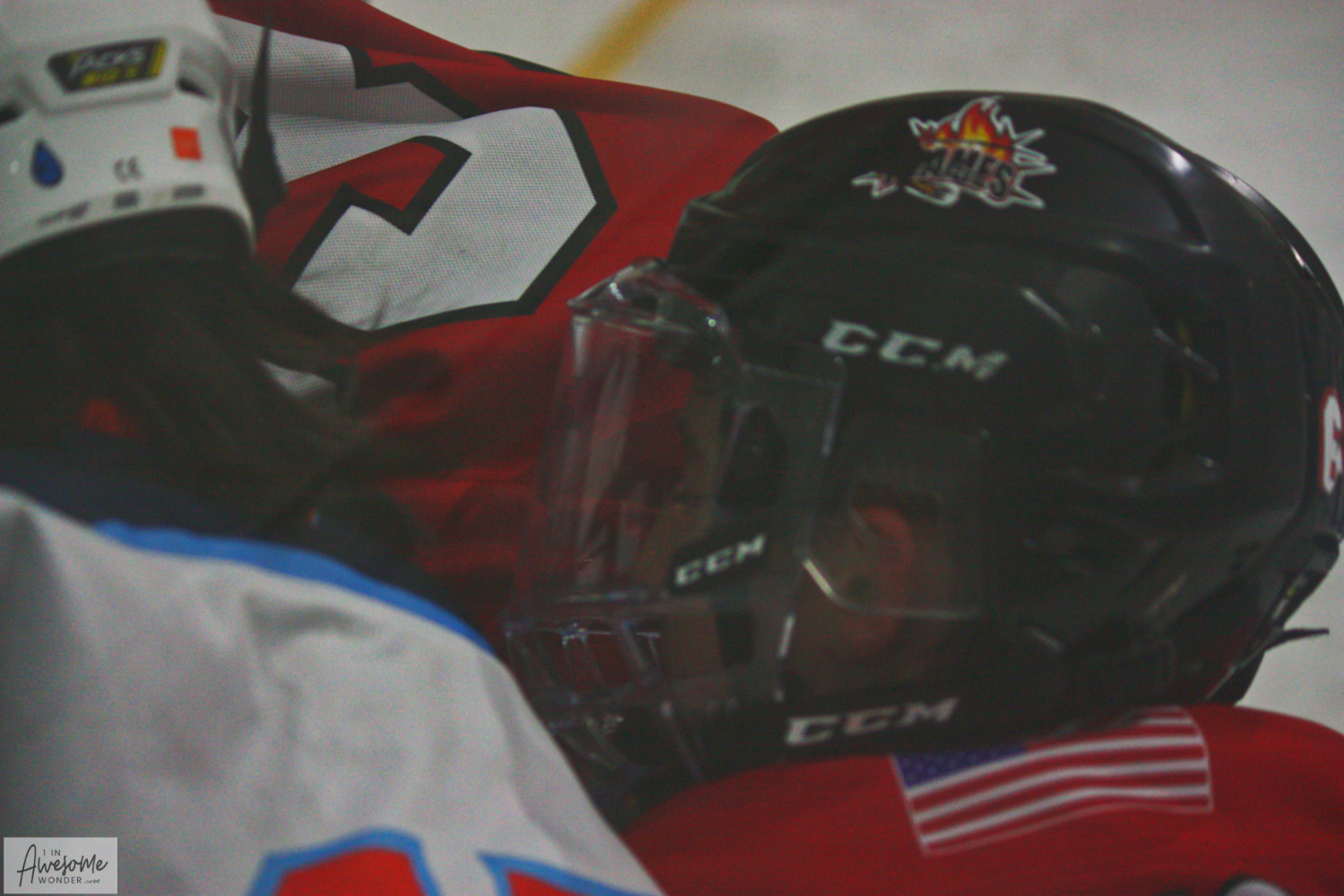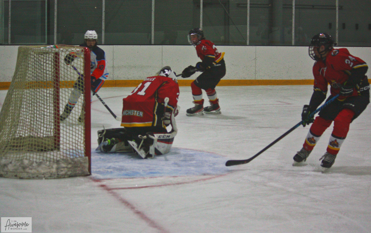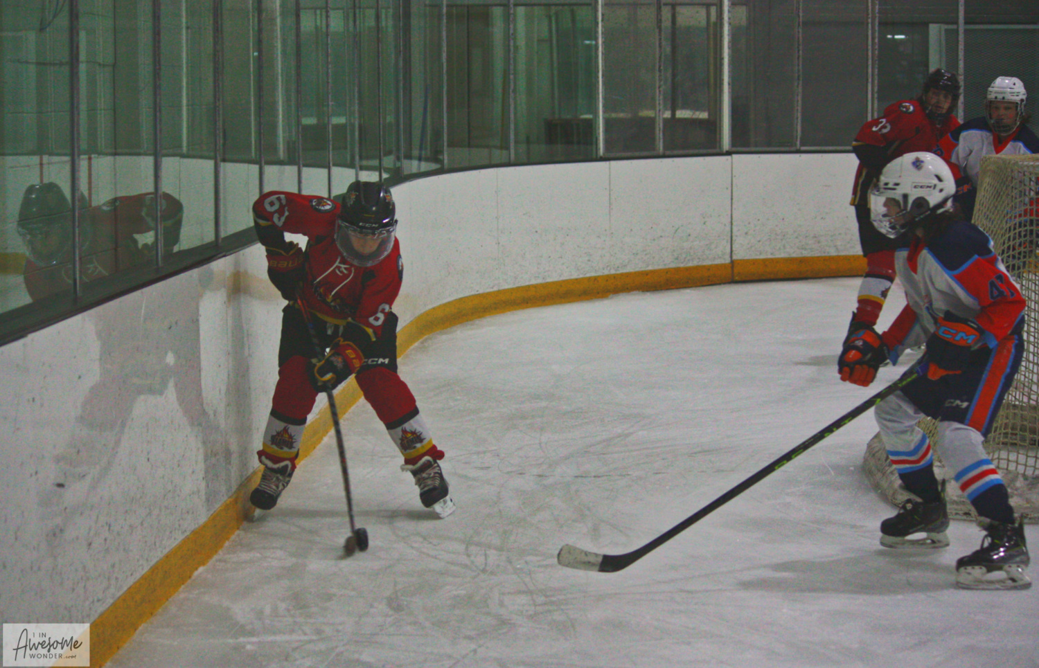 Please enjoy some pictures from Sunday’s game played in the Red Rink at Skate 3. I wasn’t going to bring my camera this morning because, well, the camera and lens are older than anyone on the team and the Red Rink isn’t the best place to take pictures usually. But the glass in the corner where I was standing was better than many other places so I gave it a shot. I definitely got some close-ups.