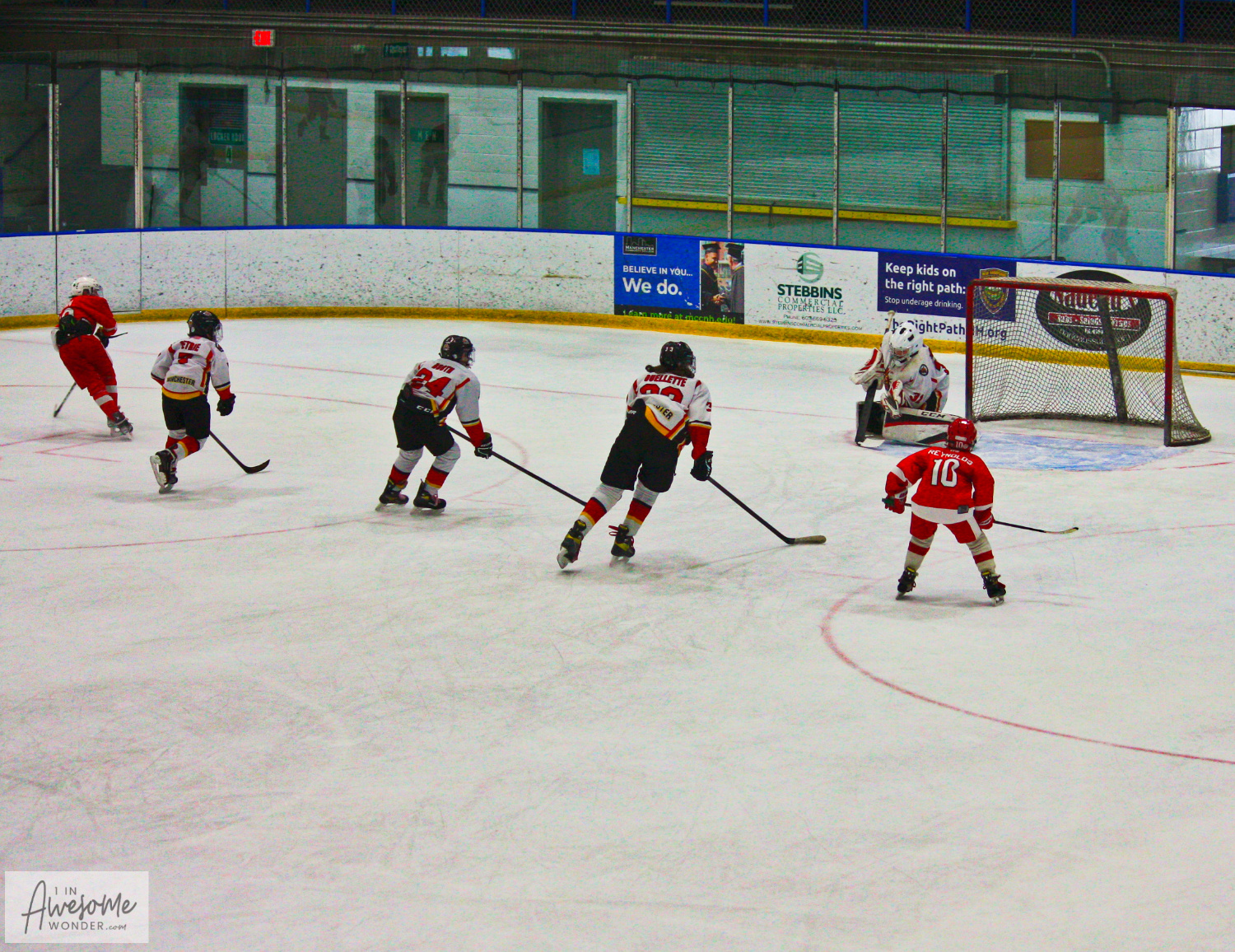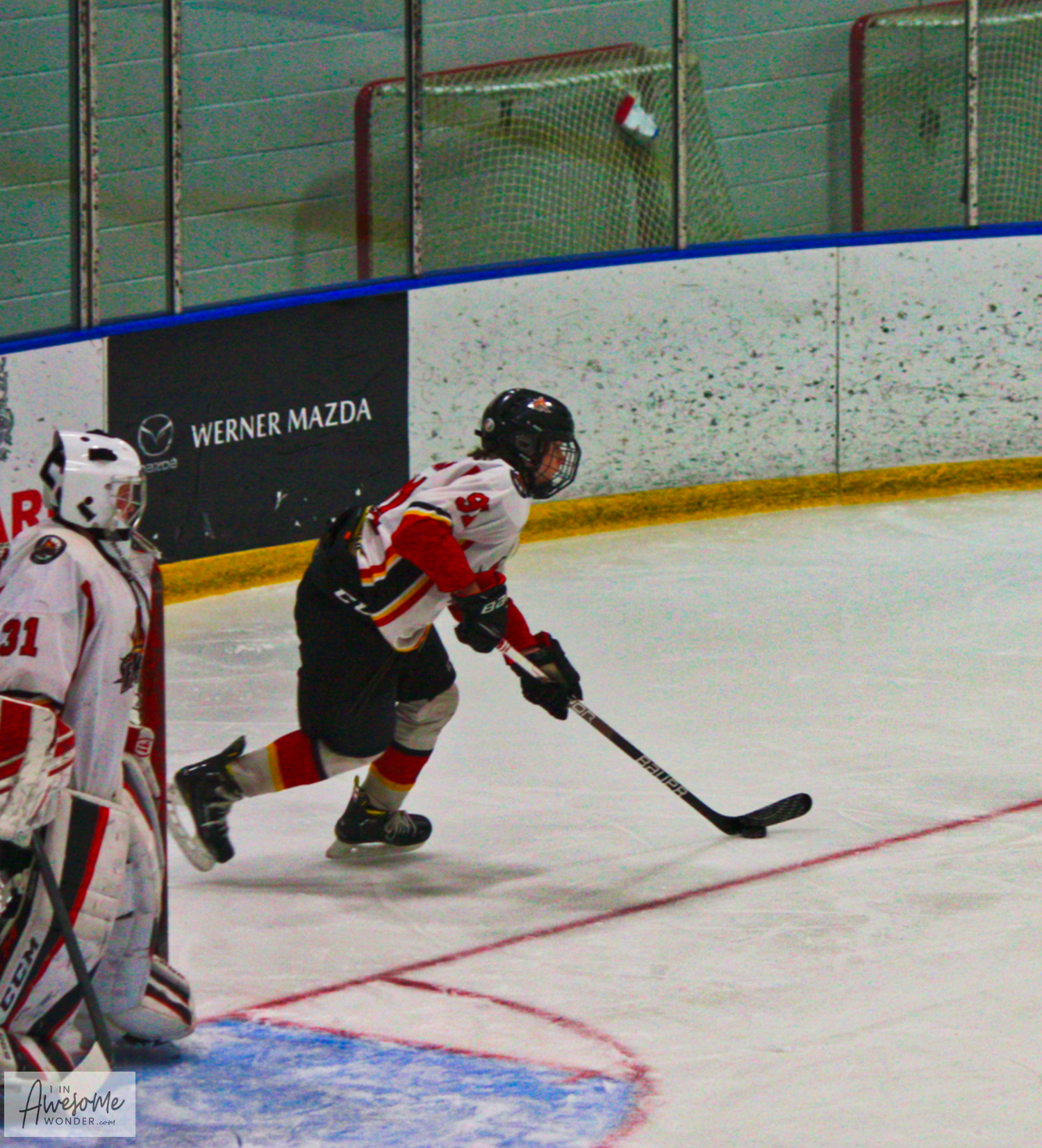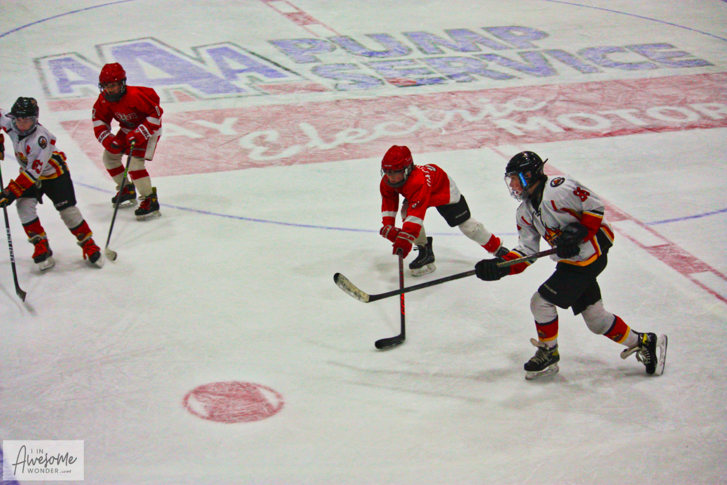 With the Flames holding a 3-2 lead entering the final period, they kept applying pressure. The Cyclones took three straight penalties in the final period, but the Flames could not add to their lead. The Flames held on, and won the game, 3-2 after allowing the first two goals of the game. It only took everyone on the team to earn the win. As it should be. Our kids. The reason why.