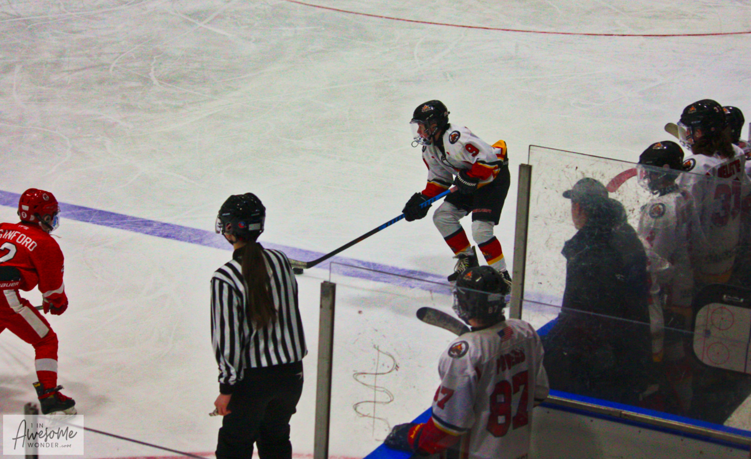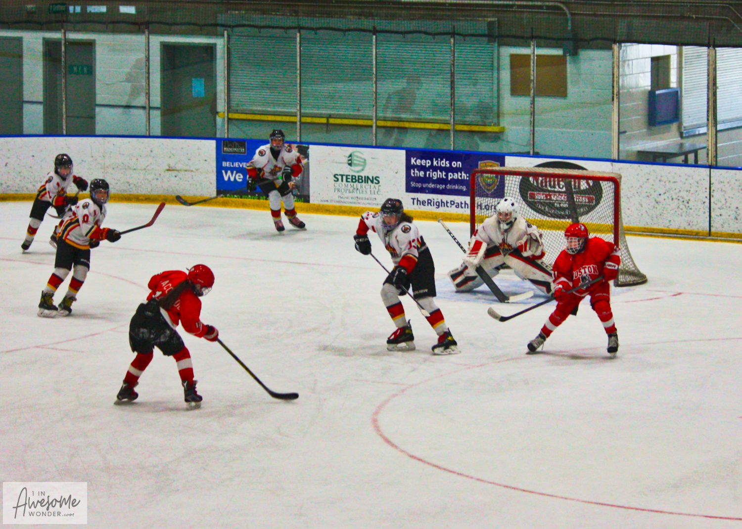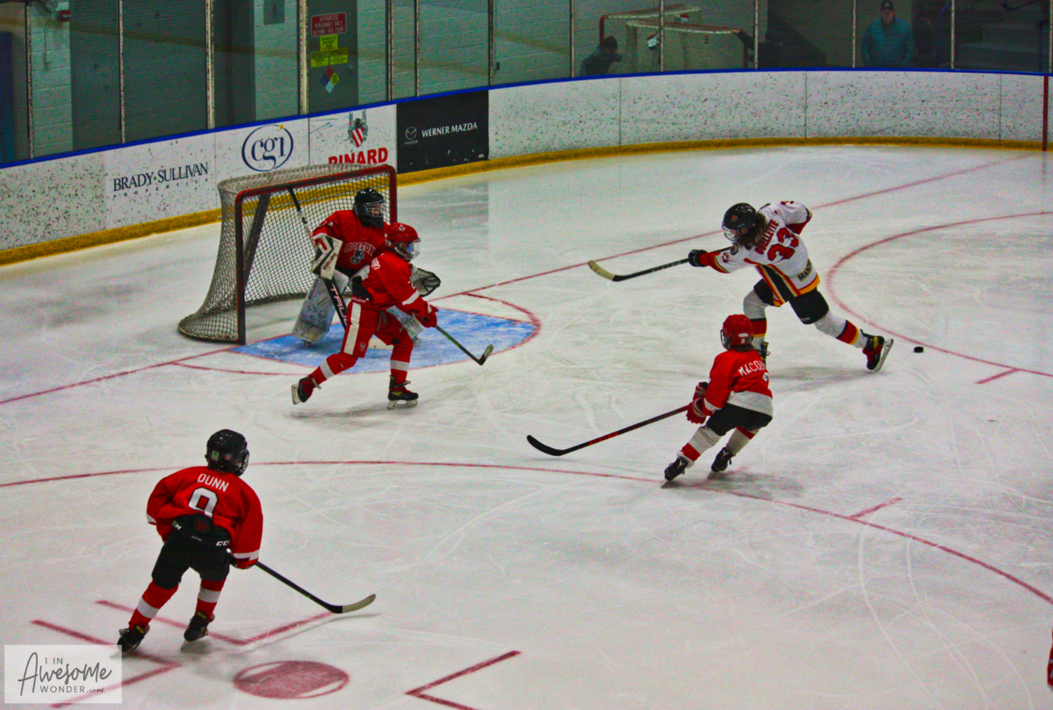With the Flames holding a 3-2 lead entering the final period, they kept applying pressure. The Cyclones took three straight penalties in the final period, but the Flames could not add to their lead. The Flames held on, and won the game, 3-2 after allowing the first two goals of the game. It only took everyone on the team to earn the win. As it should be. Our kids. The reason why.