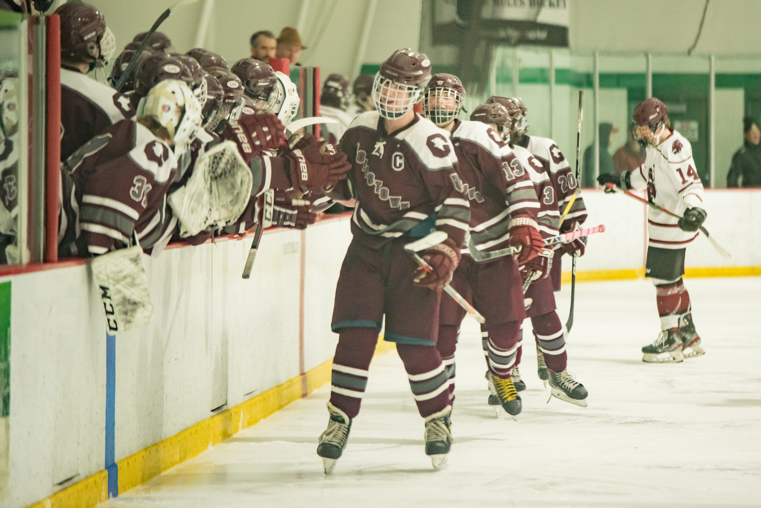 You never know how things are going to turn out. High school hockey players usually have been playing hockey for upwards of ten years, or more, by the time they get to their senior season of high school. Senior seasons for many senior players had already ended, and their stories had been written. There is no guarantee that a player’s senior season will be their best season. And in the last two years, we have seen that there was no guarantee of anyone having a season at all. Goffstown’s senior captain, Luc Ouellette was in uniform and on the ice for Goffstown’s Quarterfinal game thanks in part to his record as a clean, hard-nosed, gentleman on and off the ice for the past four seasons. He was on the ice because of excellent officiating and timely, effective, communication with an opposing coach from two weeks earlier. Seasons, careers, and storybooks all come to an end ultimately, and in sports someone always ends up with a loss. But before any of those things happened, Ouellette answered Suhesky’s brilliant dash on his 2nd period power play dash with a fantasy dash of his own.