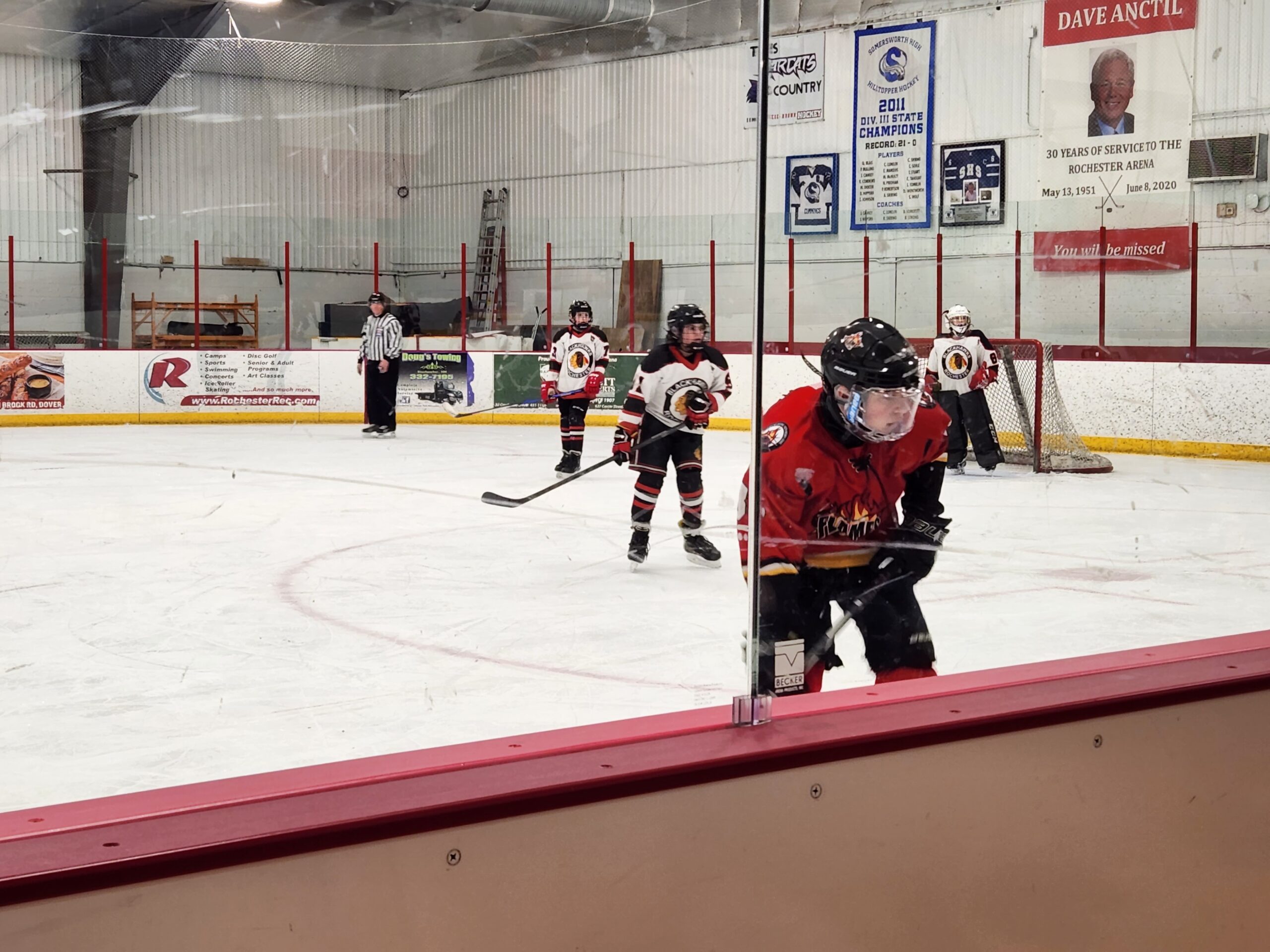 February 11th – Saturday morning my wife and I took Jackie to the Ice Den again, for her Saturday figure skating of Power and Edge, show practice, and Learn to Skate instruction (there are many levels of LTS). We were back home in time to eat some lunch and get Teddy over to West Side Arena for his game against the Bridgewater Bandits. The 2010 Flames won the game, 2-0.
