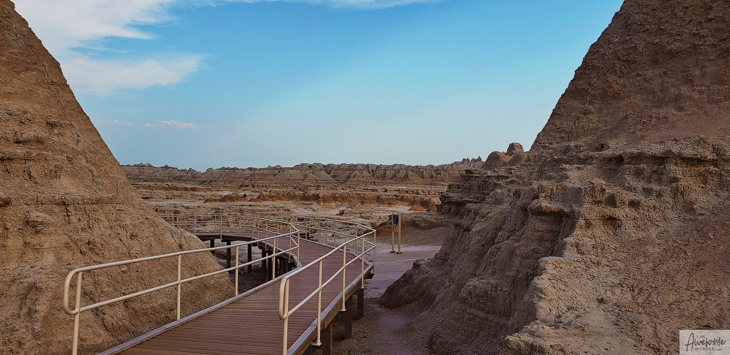 After my searing hike up Saddle Pass and around the loop trail, and a quick visit to Wall Drug, I returned for my final evening in Badlands National Park. Also, I had decided on doing a couple more hikes, albeit very short hikes.