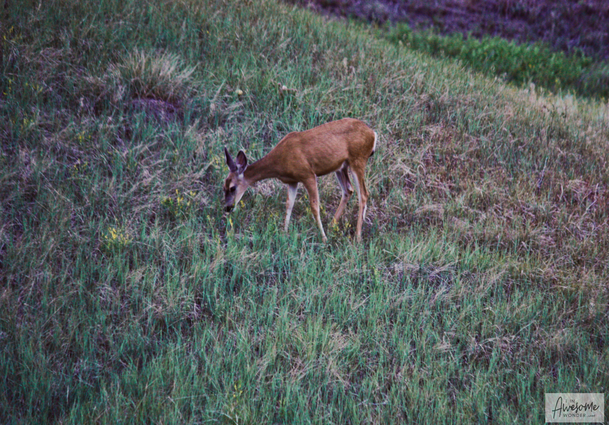 I stopped to look at another incredible rock formation and turned toward my vehicle only to see this deer munching grass opposite the rocks I had been looking at. © 1inawesomewonder 2022.