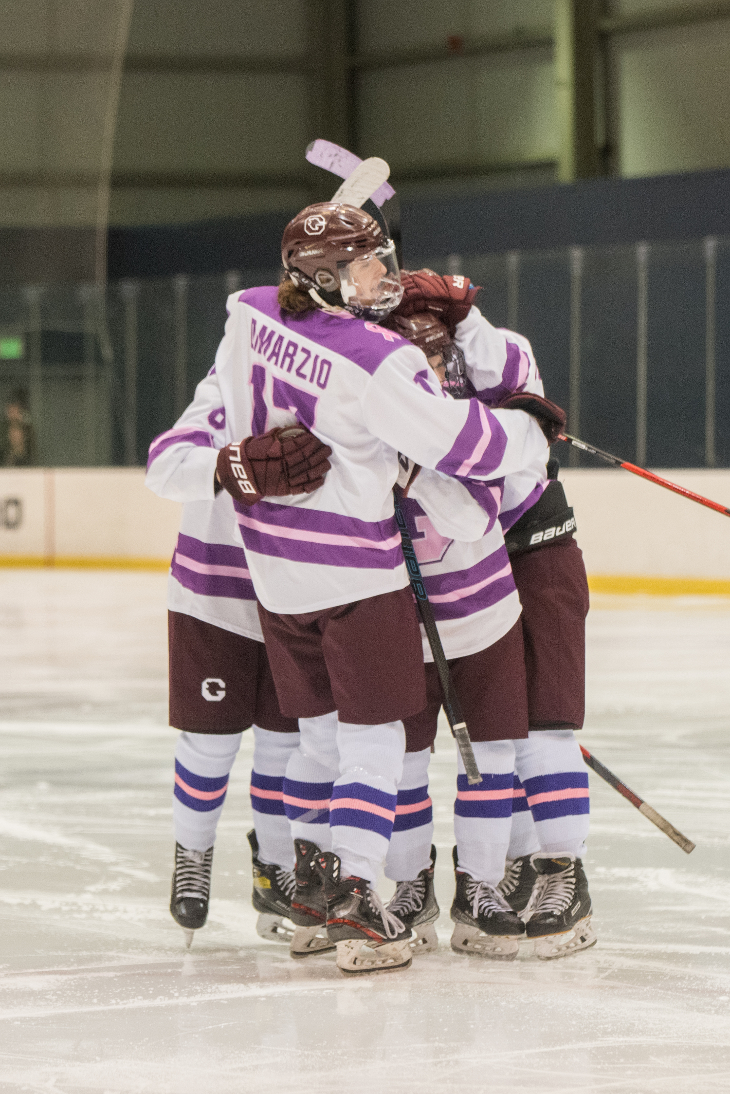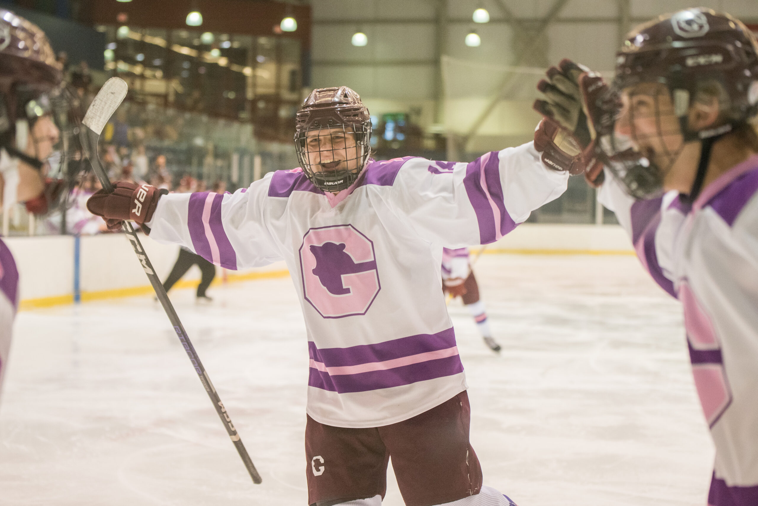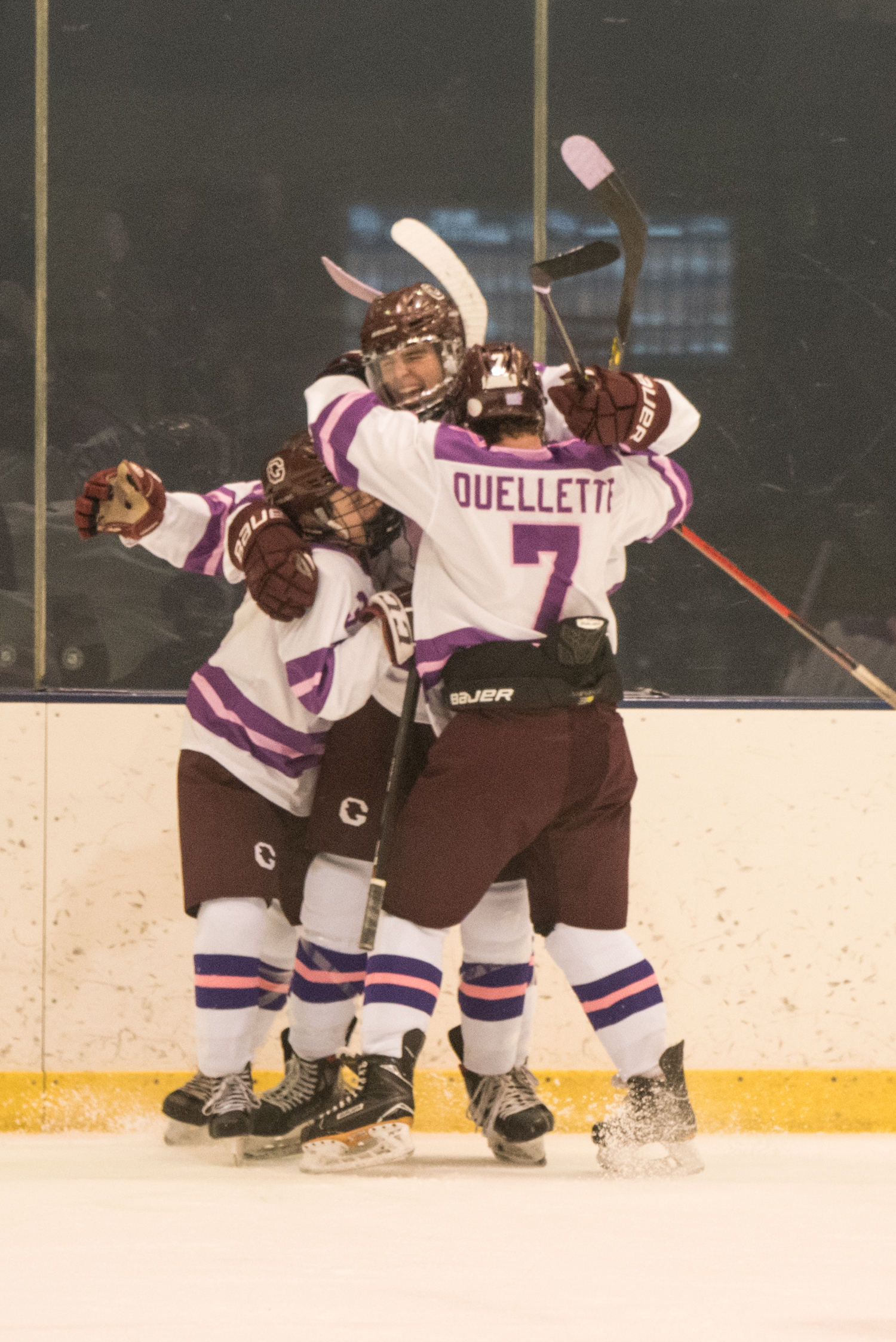 It was Hockey Fights Cancer Night at Sullivan Arena and the place was buzzing! By the way, the jerseys that Senior, Jack Wilkinson designed are awesome! I thought they looked fantastic in pictures and on video! I liked the socks too. Nicely done! The Goffstown hockey team, players, coaches, families, and friends raised more than $2150 on the evening to fight cancer. So there are wins everywhere, despite what the scoreboard might read.
