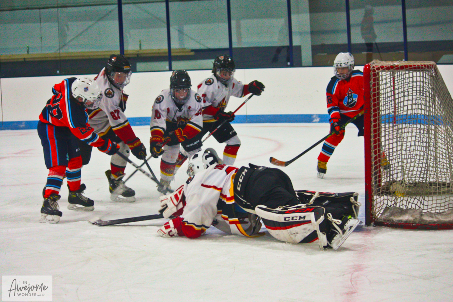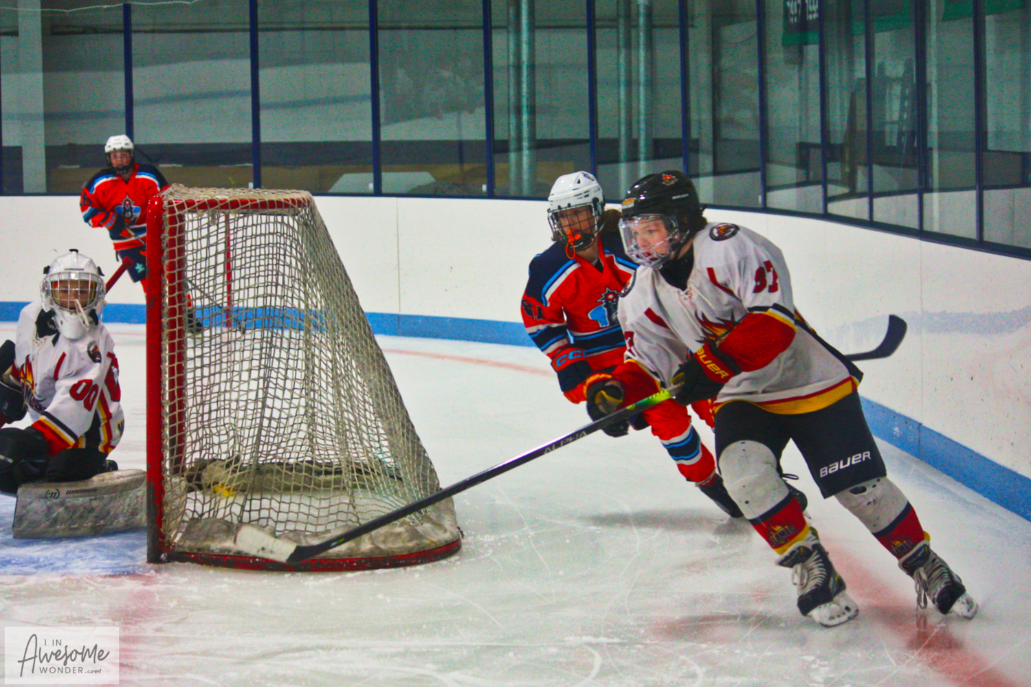 With what turned out to be the game-winning-goal, Garrett Warren scored to give the Flames a 5-1 lead. First, Jacob St. Pierre fired a breakaway chance into the goalie and the Flames grabbed the rebound. The puck came back to Caleb Powers who shot from the high slot but missed wide right. Teddy Beal beat two Islanders to the wall to get the puck to Gavin Petrie. Petrie made a short pass to St. Pierre at the point. Jacob slid a shot/pass along the ice toward the net. Beal redirected the puck toward the crease where Warren scored a beauty from the low slot. GWG, Warren from Beal and St. Pierre. All five Flames skaters touched the puck on the play.