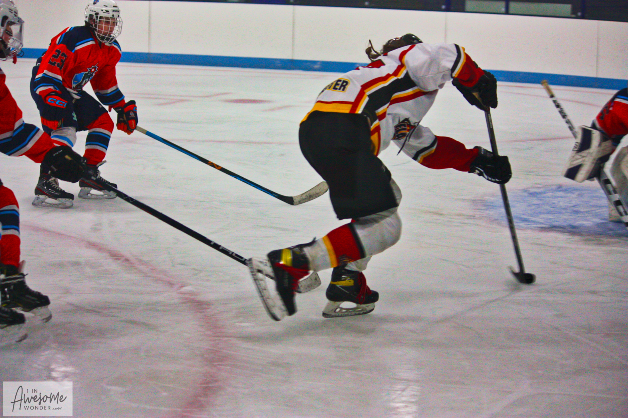 On the sheet of ice I see, kids at play, always learning from you and me.