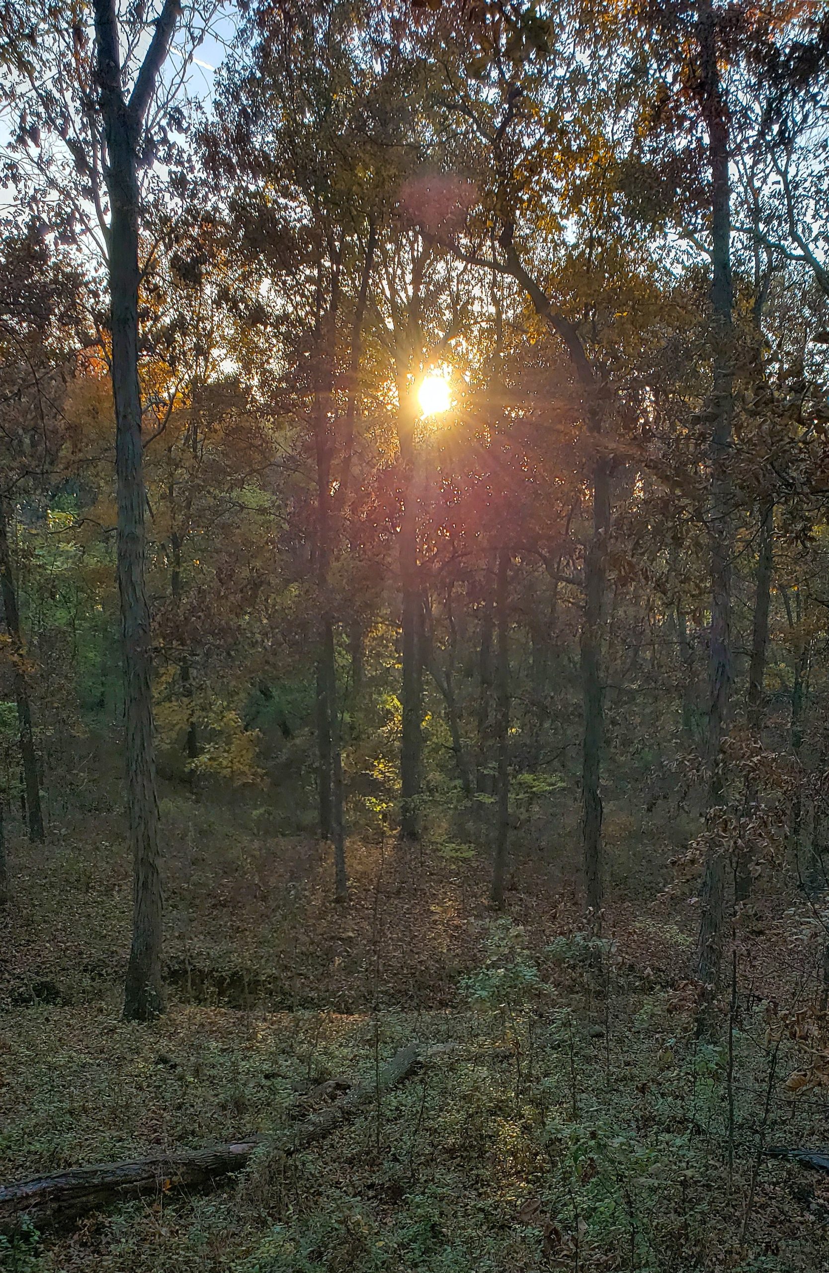 So, with all of that, I still did enjoy the woods and the skies. The woods and the skies, along with the sun and the moon, did their part to improve the quality of my trip west. I took pictures that end up only capturing a fraction of the impact these scenes impress upon me while I am present in their midst. These were days the Lord had made, and I did rejoice in them, while be being both blessed and grateful. I hope you enjoy the pictures. The sunrises. The sunsets. The sounds. The feel of the shifting, if not mighty winds, changing directions and affecting temperatures. The squirrels, the owls, the coyotes, the bats, the rabbits, the turkeys, the woodpeckers, the cattle on the nextΒ farm, and the hawks all play a part in adding value to the joy of being outside. Always my pleasure.Β